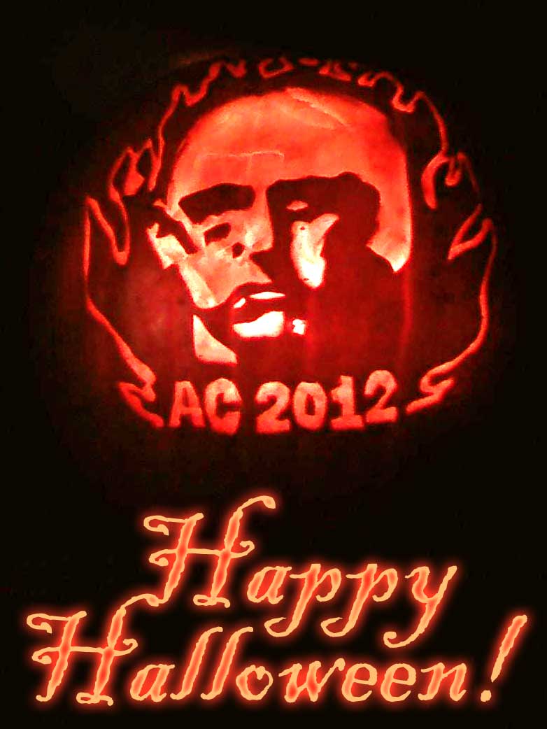Many thanks to Jennifer McGaha of Winder, GA, who sent in the following photo of her amazing AC2012 Pumpkin! We added the holiday message for all our supporters.